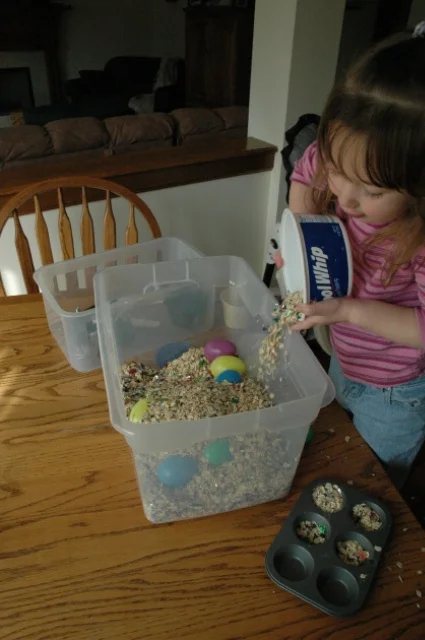 oatmeal, plastic eggs, confetti, small muffin tins, etc.