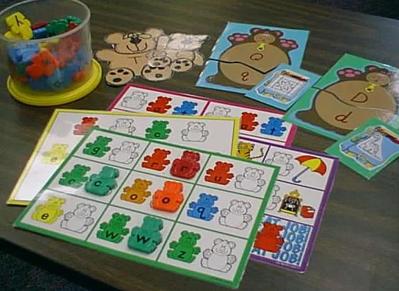 (The plastic alphabet bears and mats were purchased through Learning Resources many years ago. They have since been discontinued.)
