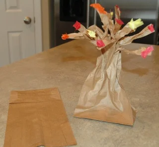 Above: Examining Leaves from our Leaf Hunt and Creating a Painted Tree